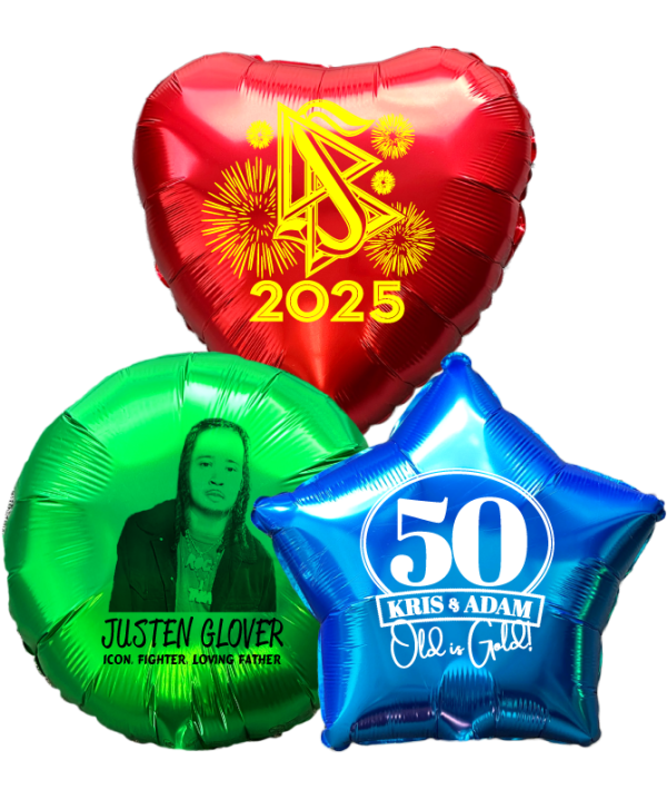 Make a lasting impression with 18–21″ foil custom balloons with graphic, picture, logo, or text, designed for maximum visual impact and durability. These high-quality foil balloons can be fully customized with any artwork, photo, branding logo, or personalized message, making them perfect for corporate events, promotions, birthdays, weddings, and special celebrations. With a sleek finish, vibrant print quality, and durability, lasting for weeks, custom foil are ideal for branding, marketing displays, and unforgettable event décor.